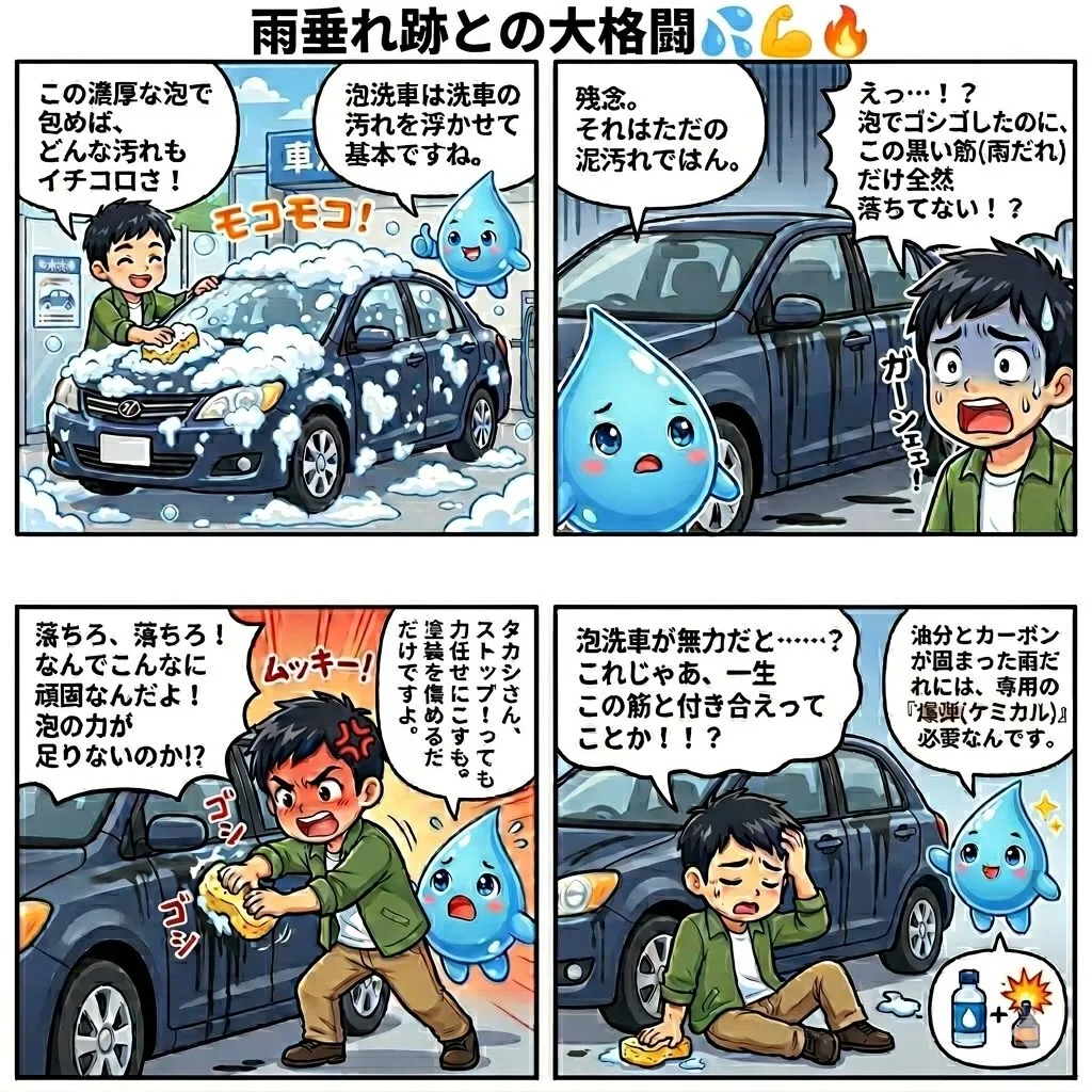 「しっかり泡洗車したのに…」